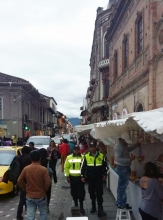 Con la finalidad de cuidar del orden y seguridad de los cuencanos, cuencanas y visitantes, que se dan cita en la feria de Corpus Christi el personal de la Guardia Ciudadana de Cuenca trabajará en un horario de 08:00 a 22:00 ininterrumpidamente para brindar protección en los lugares de mayor afluencia de ciudadanía como son los alrededores del Parque Calderón, la calle del Artista, la Plaza de las flores.