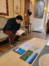 El artista cuencano, Fernando Falconí, Magíster en Artes y docente universitario, analizó los dibujos que llegaron a las oficinas de la Guardia Ciudadana para participar en el concurso "Dibuja con Ana y Alfonso". Él seleccionó a los semifinalistas.