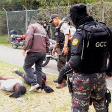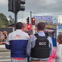 Guardia Ciudadana precautelando la integridad de los transeúntes retira a un individuo que se encontraba amenazando con piedras a quienes pasaban por el lugar.