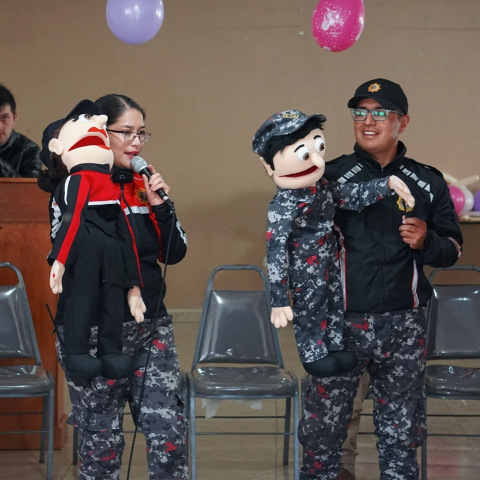 Ana y Alfonso, nuestros agentes lúdicos OrgullosamenteCuencanos de la GuardiaCiudadana, visitaron a los niños, niñas y jóvenes de la colonia vacacional organizada por el Gad Victoria del Portete y les enseñaron sobre el buen uso de los espacios públicos y el OrdenControlSeguridad.