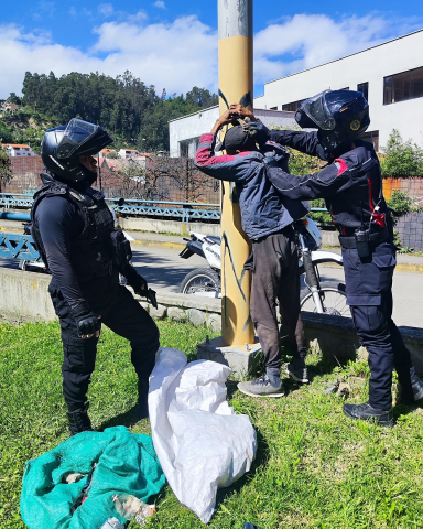 #GuardiaCiudadana, tras múltiples denuncias, neutralizó a un individuo que intimidaba a transeúntes con objetos cortopunzantes bajo el puente de la Av. 24 de Mayo, en el sector del colegio Garaicoa.Durante la intervención, se encontró en su poder un arma de juguete, presuntamente utilizada para cometer robos en la zona.#OrdenControlSeguridad