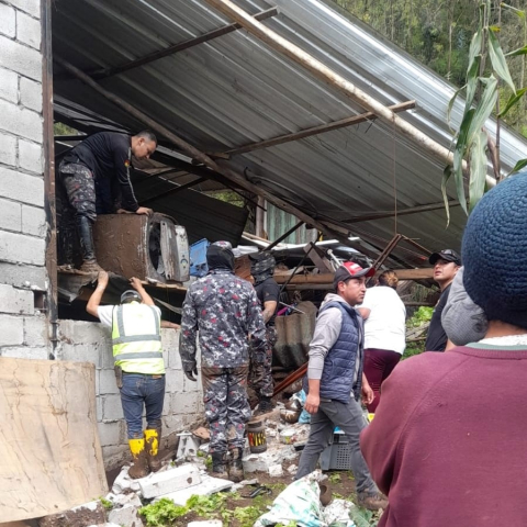 El sábado 27 de mayo la Guardia Ciudadana apoyó en el sector del Lirio - Baños, donde por presencia de las intensas lluvias de estos últimos días se produjo un flujo de lodos surgidodo a cinco construcciones y varias familias, así como sus enseres fueron evacuados.