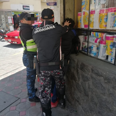 La tarde del 18 de marzo, mientras los agentes de la Guardia Ciudadana y la EMOV EP apoyaban con los incidentes producto del fuerte sismo que sintió Cuenca, por una denuncia ciudadana fueron alertados del robo de un celular a una ciudadana en las calles Juan Montalvo y Sucre.