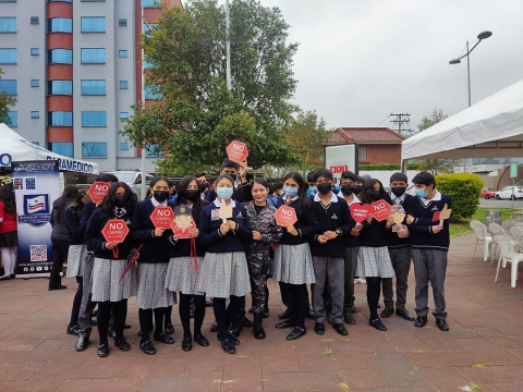 Esta mañana, nuestra unidad lúdica comparte con los niños y jóvenes de las diferentes unidades educativas en el lanzamiento de la campaña "Si juegas con pólvora, juegas con tu vida".