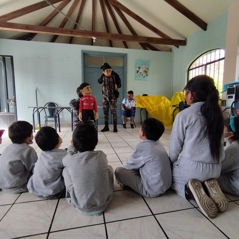 Ana y Alfonso, nuestros agentes de la Guardia Ciudadana, visitaron a los estudiantes de la Escuela Jorge Valencia Peñaherrera, de la comunidad de Morascalle en la parroquia Tarqui el día 02 de febrero.