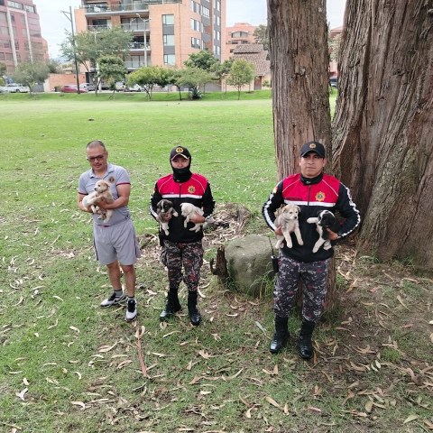 GuardiaCiudadana rescató a seis cachorrosque habían sido abandonados dentro de un saquillo cerca del río Tomebamba a la altura de Puertas del Sol.