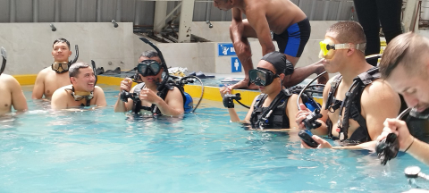 Este jueves 30 de marzo, los 12 agentes de la Guardia Ciudadana que pasaron las pruebas y fueron seleccionados para el curso especial de Rescate y Búsqueda en Lagos y Ríos de la inician sus prácticas de Equipamiento y respiración con tanque de oxígeno.