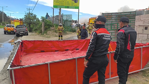 #GuardiaCiudadana brindó su apoyo a @bomberoscuenca durante la atención de un incendio de gran magnitud, acordonando la zona para evitar accidentes.Garantizando el #OrdenControlSeguridad de la ciudadanía y facilitando el trabajo de los equipos de emergencia.Este suceso se registró en la vía Cuenca–Azogues