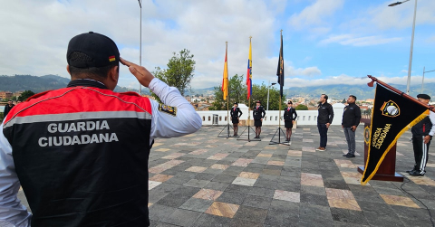 #GuardiaCiudadana, como todos los lunes, previo al inicio de las actividades semanales, rindió honores al Estandarte Nacional en un espacio público de #Cuenca.En esta ocasión, el momento cívico se desarrolló en El Vado y se reflexionó sobre la conmemoración del #DíaDeLaMujer.#OrdenControlSeguridad