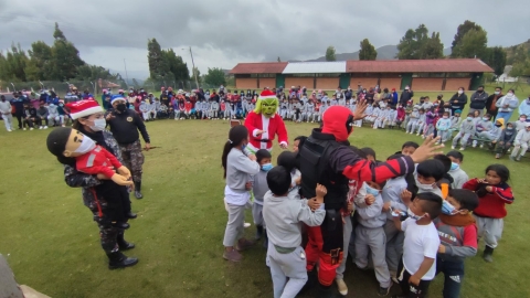 Decenas de niños y niñas de los lugares aledaños recibieron un agasajo navideño y conocieron más de la labor que desempeña la Guardia Ciudadana para cuidar del orden, control, seguridad y bioseguridad de Cuenca y nuestros habitantes.