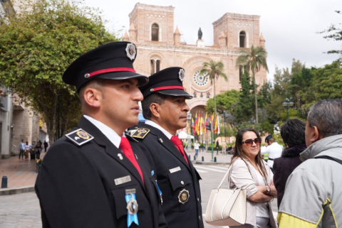 #GuardiaCiudadana con su personal de protocolo y su #BandaMusical amenizan la entrega de Ofrendas Florales por los 205 años de Independencia de #Cuenca.#OrdenControlSeguridad