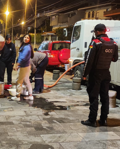 #GuardiaCiudadana brinda apoyo a @etapacuenca en la distribución de agua en sitios estratégicos, debido a la rotura de una tubería matriz. Se está abasteciendo a los sectores afectados, desde el Parque de la Libertad hasta el Colegio Manuel J. Calle.#OrdenControlSeguridad